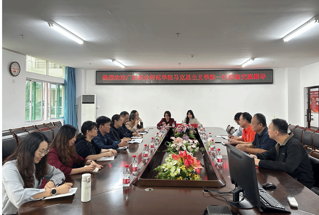 11月13日上午,广西职业师范学院马克思主义学院院长陈健萍一行来我院交流调研,并在学院311会议室举行交流座谈会。学院党委书记王大群、党委副书记王群生、副院长(主持工作)王善出席会议。会议由王大群主持。