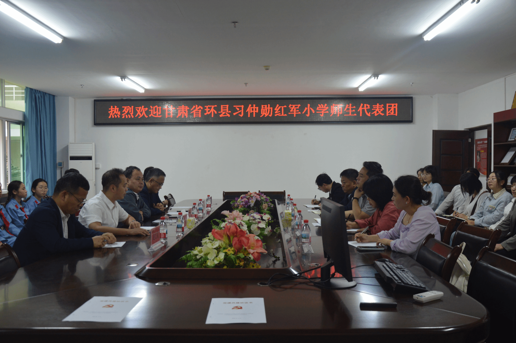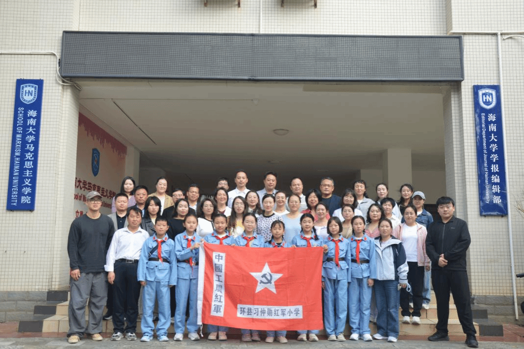 海南大学马克思主义学院副院长蔡文举、王一闳;环县习仲勋红军小学副校长杨志科;双方师生代表参加会议。