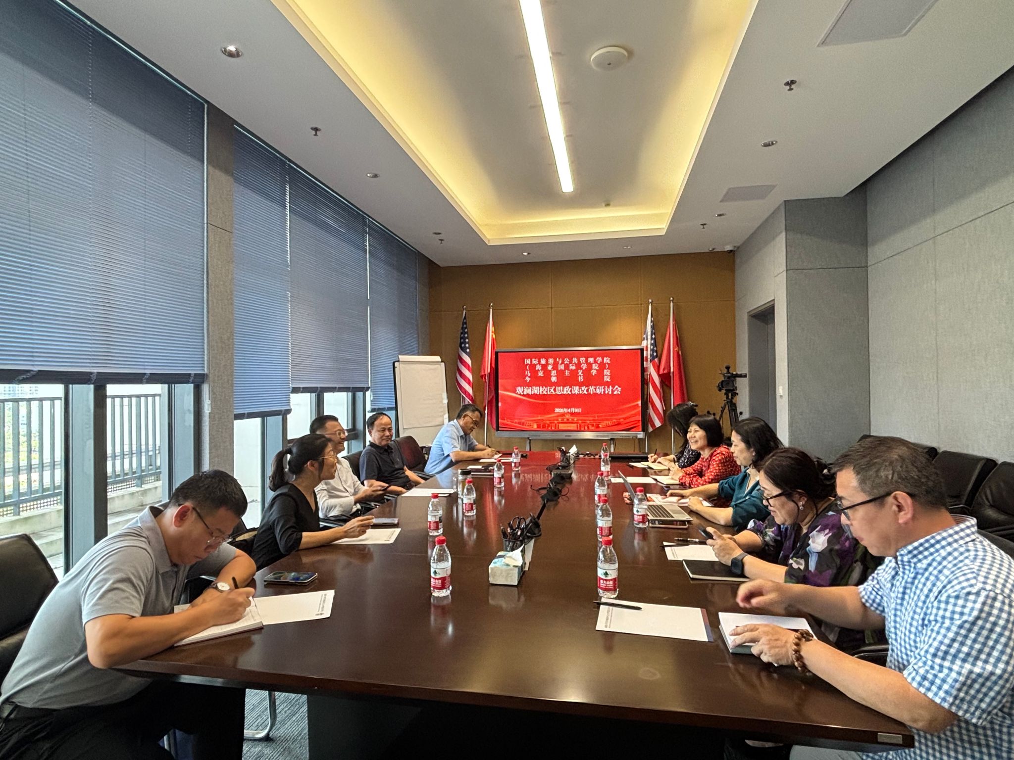 为推动各校区思政课建设优质均衡发展,2026年4月9日,校党委常委、副校长高佃恭,学院执行院长杨娜、党委书记王大群一行赴观澜湖校区调研,与海亚学院、今朝书院领导班子成员,以及部分学生代表进行座谈交流,深入了解学情教情,共同谋划思政课高质量发展。