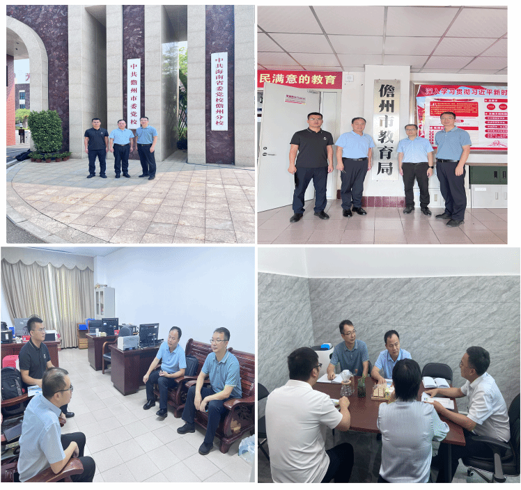 4月15日,学院一行先后走访儋州市委党校、儋州市教育局。王大群介绍了学院的基本情况、专业特色及学科优势,希望在理论政策研究阐释、干部教育培训等方面深化合作,为党校教学科研提供人才支撑。王群生围绕毕业生就业与校地合作事宜,提出在中小学校思政课程建设、教师队伍培训等领域加强联动,助力当地基础教育事业发展。